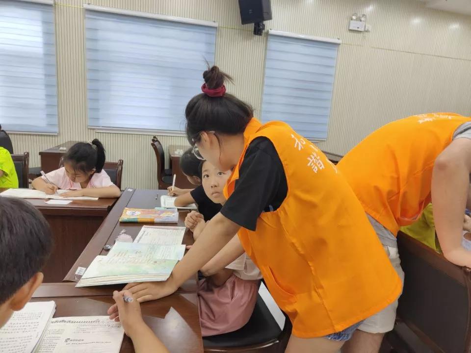 八点三十分,课程正式开始。对于英语的教学,团队成员们针对不同程度的同学安排了不同的学习任务,令每位同学都能学有所得;数学方面,团队成员带领同学们完成练习题,从而有针对性的进行辅导;语文教学方面,团队成员们带领他们学习古诗,讲解古诗的释义,领略古诗词的魅力。