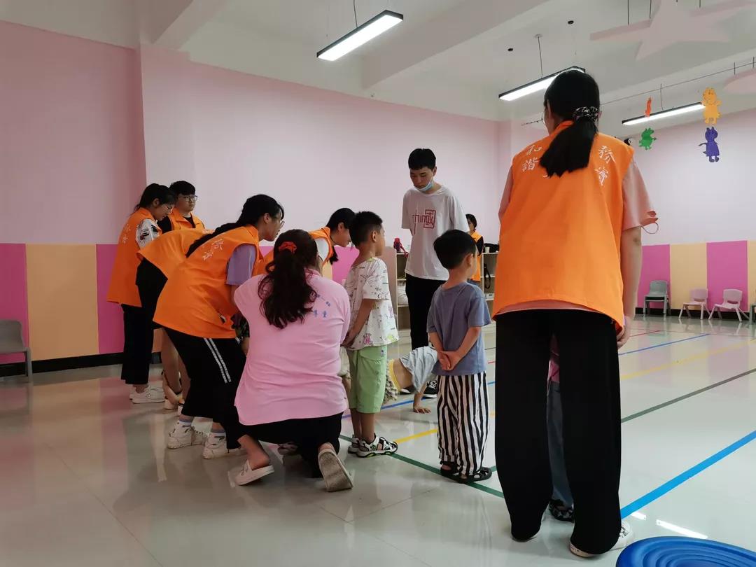 团队成员协助昊雨智能发展服务中心的老师们带领孩子们一起做游戏。孩子们在游戏过程中既能感受到快乐,还能提高反应能力。游戏结束后,队员引导孩子们自行收拾场地,帮助孩子们养成良好的生活习惯,为将来的生活与工作打下基础。