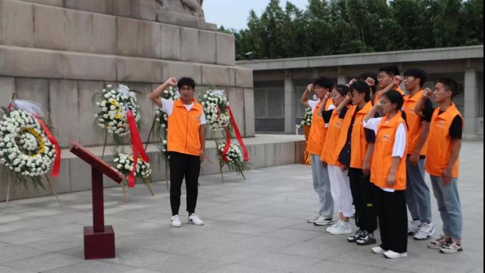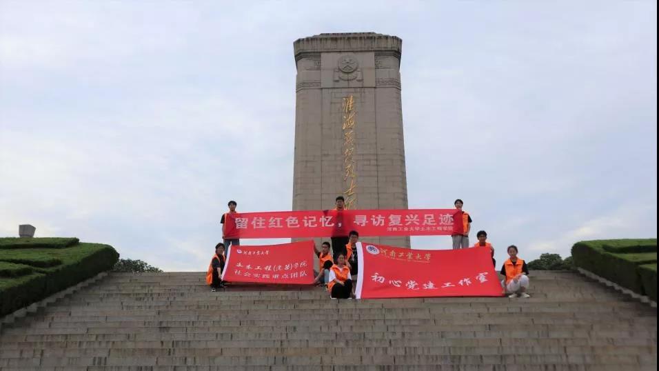 7月13日,实践团队前往淮海战役烈士纪念塔。在抵达淮海战役烈士纪念塔后,团队成员怀着对烈士无比敬仰的心情踏上台阶,台阶共219级,台阶之间共有10个平台,10个平台连成的平坦大道,代表了千千万万个烈士用生命和鲜血换来的坦途。队员们不禁将淮海战役状况之惨烈与当今人民生活之幸福联想起来,深刻感受到国家的安康和人民的幸福是由无数共产党人不畏牺牲,艰苦奋斗带来的。团队成员走至烈士纪念塔前,怀着沉重的心情对已故革命先烈进行哀悼。