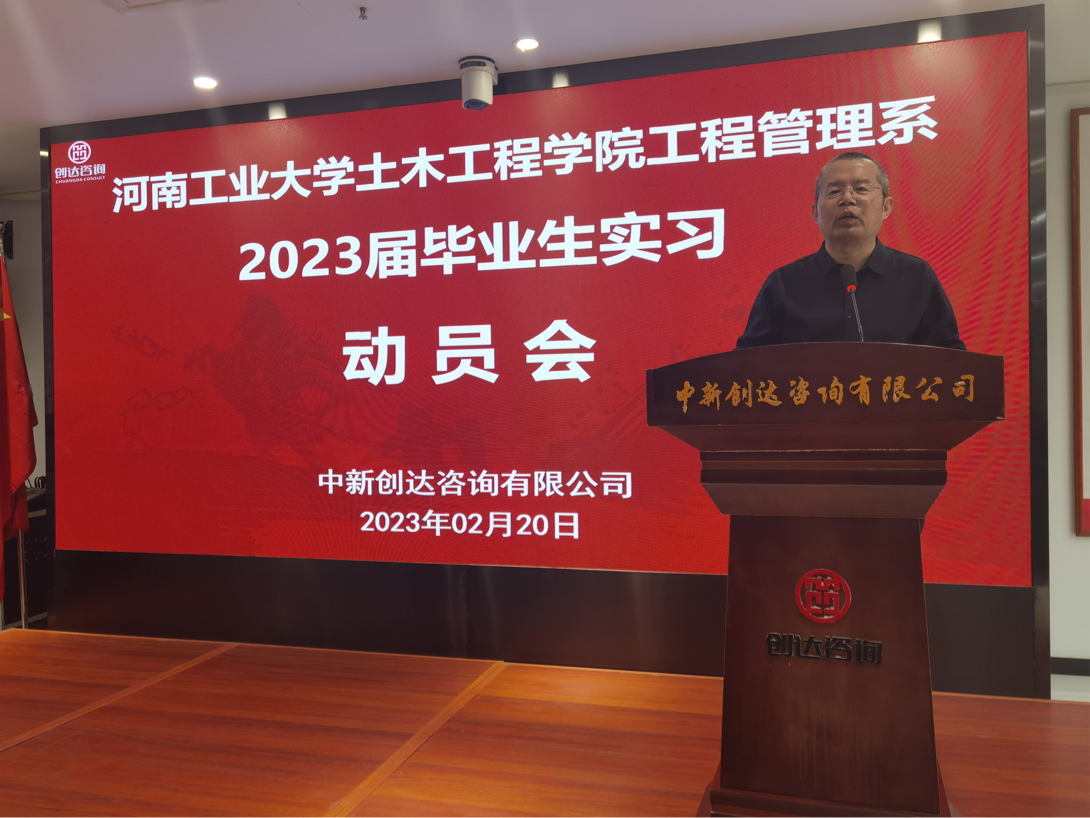 毕业实习和毕业论文(设计)是人才培养方案的重要组成部分,是本科生进行实践训练、提高综合能力和创新精神的重要教学环节。为全面提升2023届本科学生毕业实习与毕业论文(设计)质量,yanetfix 工程管理专业于2月20日在中新创达咨询有限公司举行2023届毕业生实习动员会。工程管理系全体实习指导教师、中新创达咨询有限公司领导出席毕业实习动员大会。
