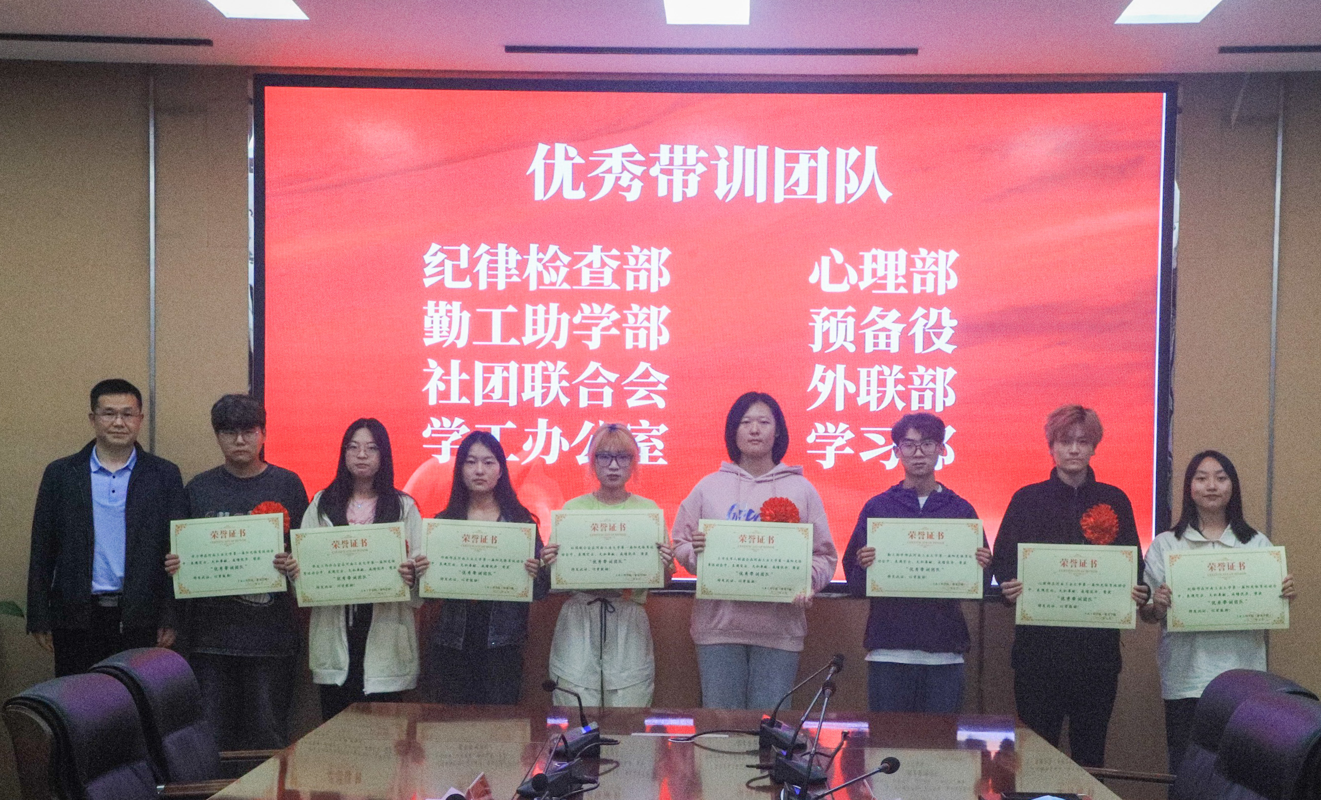 最后,学院领导为受表彰的先进个人和先进团体颁发了荣誉证书并合影留念。