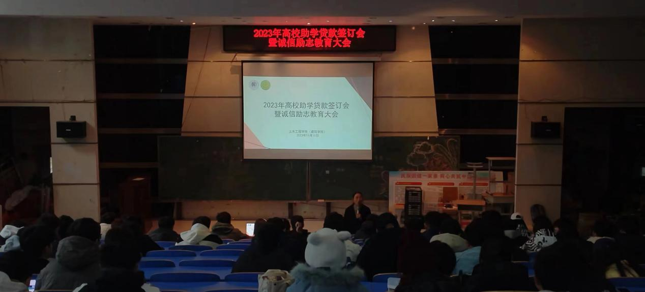 为贯彻落实高校资助政策,保障高校贷款工作的顺利进行,同时培养学生的诚信感恩之心。11月11日,土木工程学院建筑学院32201召开2023年高校助学贷款签订暨诚信励志教育会,学院资助负责人郭珊珊老师、资助助理及申请高校贷款的学生参加了本次会议。