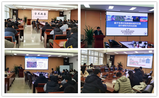 郑院长首先对金盛教授的到来表示热烈欢迎,并对其在学术领域的卓越贡献给予高度评价。金盛教授首先对浙江大学国家卓越工程师学院和建筑工程学院智能交通研究所进行了简要介绍。随后,他围绕基于车牌识别数据的城市交通运行感知与优化控制进行了深入浅出的讲解。金教授表示,通过车牌识别数据,可以系统地了解城市交通运行情况,为交通管理与控制提供科学的决策依据。他详细阐述了车牌识别数据在城市交通运行感知、交通管理与控制等方面的建模与应用,为在场师生提供了宝贵的学术资料和实践经验。