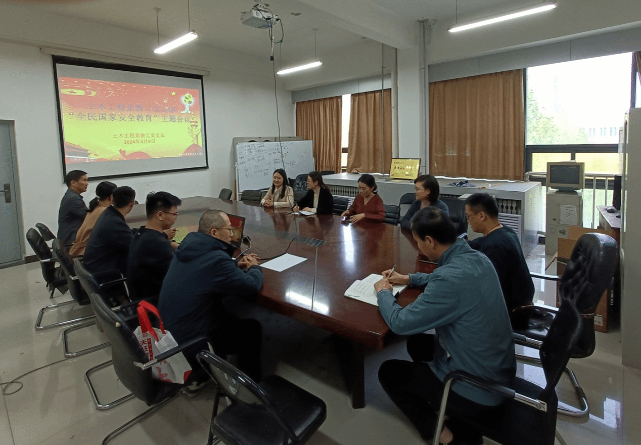 为贯彻“增强全民国家安全意识,维护国家安全”的主题精神,在我国第九个全民国家安全教育日来临之际,土工工程系教工党支部于4月9日在411会议室召开主题党日活动,土木工程系全体教工党员参加了此次会议,会议由支部书记冯永主持。