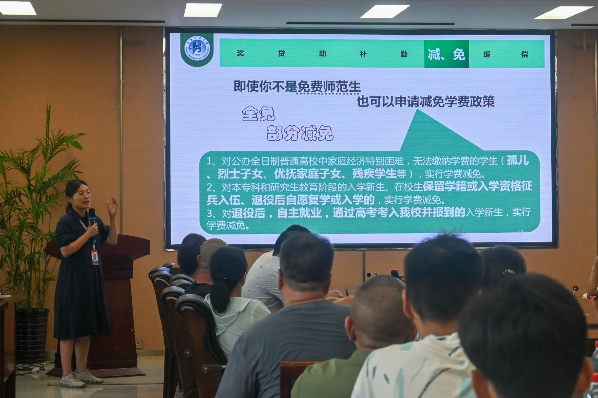 宣讲会上,负责资助工作的老师们向新生和新生家长介绍了学校学生资助工作的基本情况和学校的“奖、贷、助、补、勤、减、免、缓、偿”+应急资助的多元化家庭经济困难学生资助体系,并详细解读了国家助学贷款、国家奖助学金、勤工助学、学费减免等资助政策。在问答互动环节中,来自五湖四海的新生和新生家长们热情高涨,抛出了诸多疑问,宣讲老师们分别作出了细致解答,学生纷纷表示已了解学校的资助政策,将会珍惜大学时光,合理规划学习生活,扎实学好专业知识。