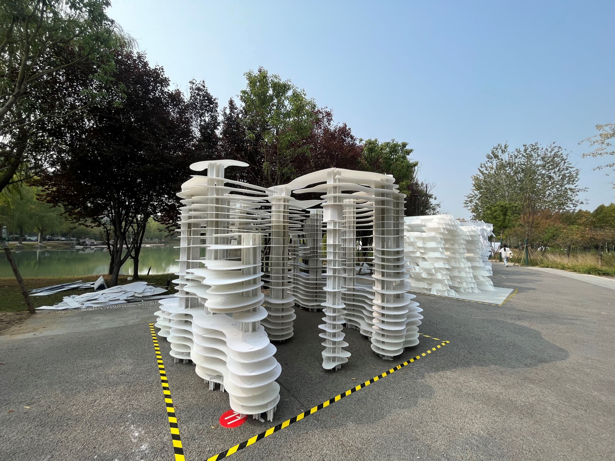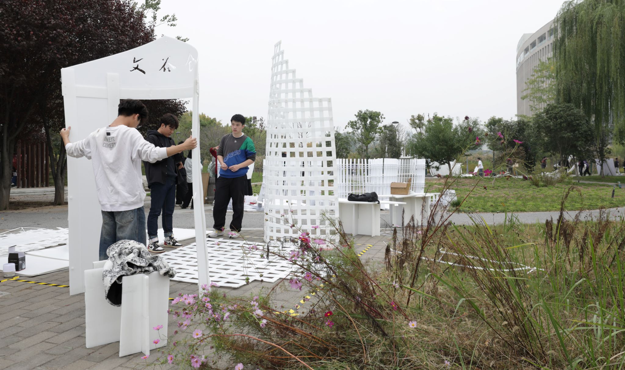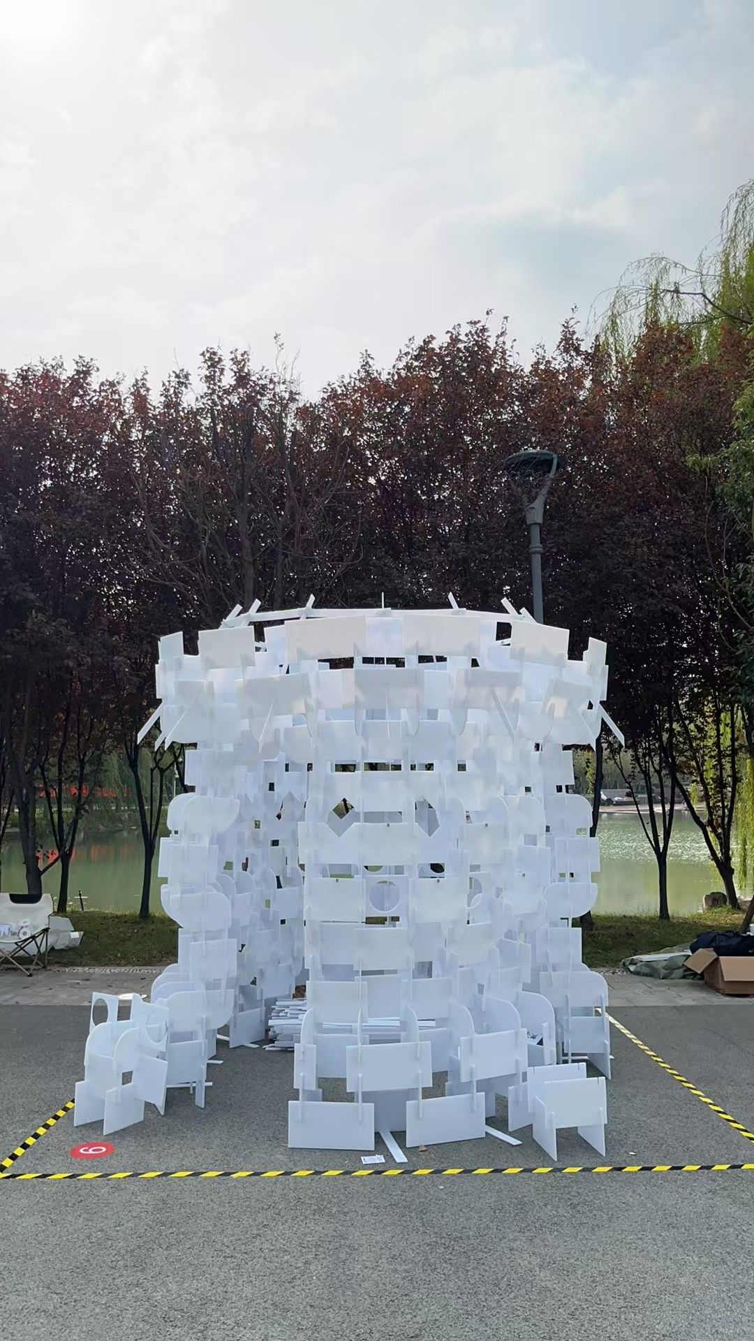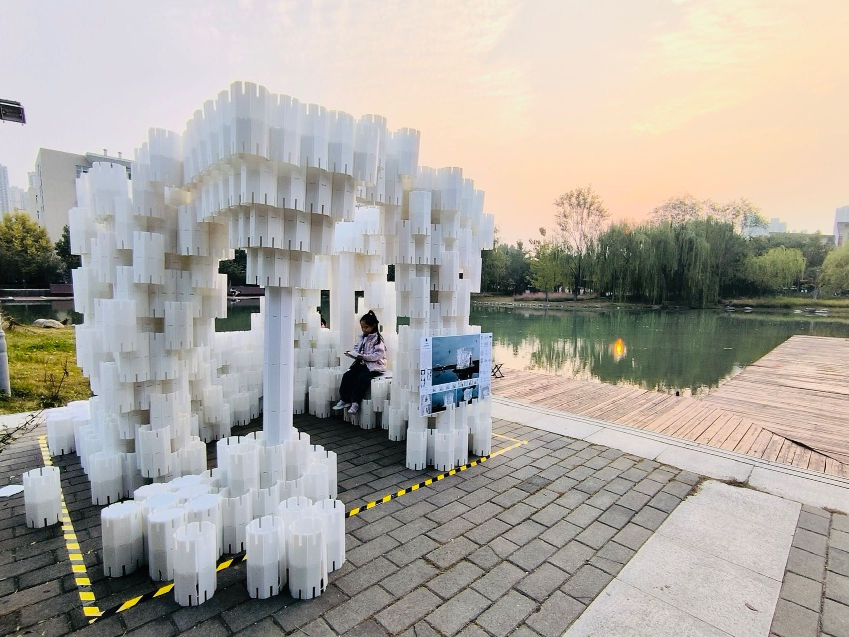 本次比赛以粮食仓储建筑“筒·藏”为设计主题,以白色中空塑料板为材料,进行形式构思及空间搭建,为yanetfix 中心景观湖畔沿岸设计并搭建一组师生休息场所。希望通过比赛激发同学们对中国粮食文化的兴趣和热爱,从而保护好、传承好、弘扬好博大精深的中国粮食文化。