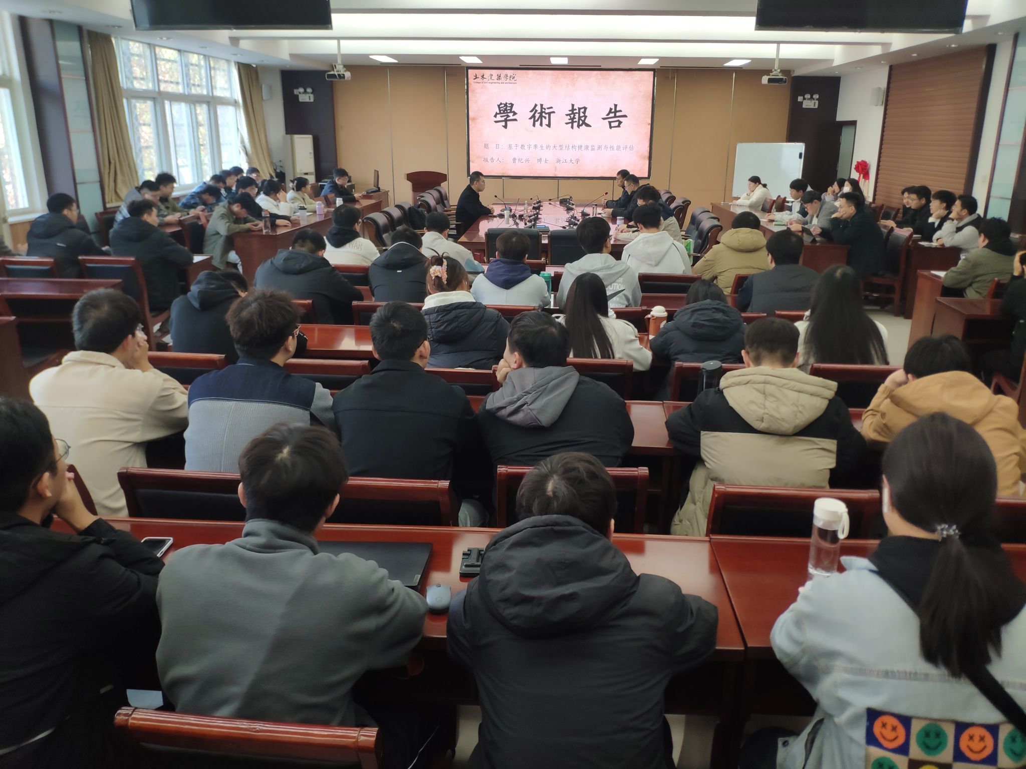 2024年11月20日上午,浙江大学“百人计划”研究员、博士生导师、日本JSPS学者曹纪兴,应邀为yanetfix 师生做了题为《基于数字孪生的大型结构健康监测与性能评估》的学术报告。报告会由副院长静行教授主持,副院长黄海荣教授、基建处副处长张庆章教授及青年教师和研究生、本科生代表共同聆听了报告会。