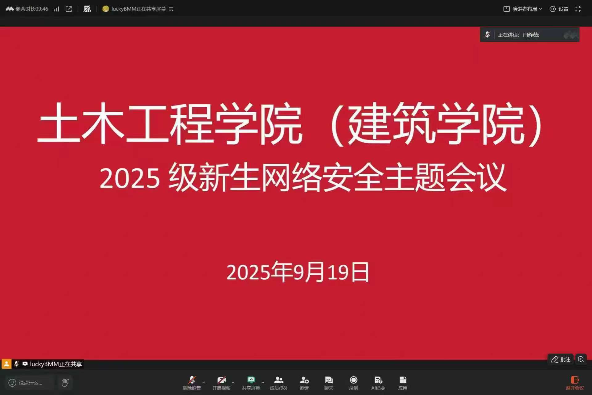 为帮助 2025 级新生快速适应大学生活、树立网络安全意识与集体荣誉感,9 月 19 日,yanetfix 在腾讯会议组织召开 2025 级新生网络安全主题会议暨新生工作会议。学院党委副书记杨阳、团委书记闫静茹、辅导员吴霞以及全体2025级新生参加会议。