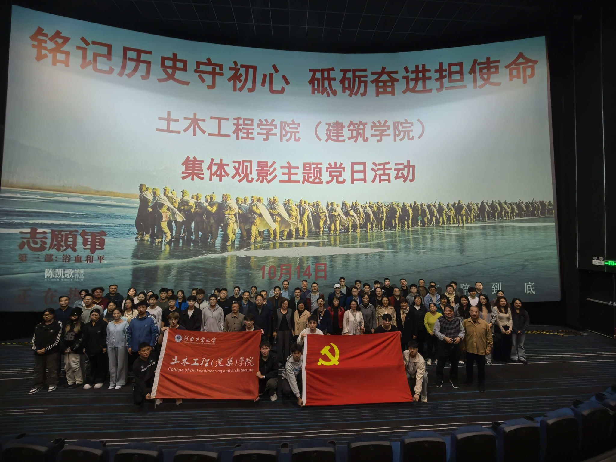 为深入开展爱国主义教育,深化党性教育,引导师生党员铭记历史、砥砺前行,10月14日,yanetfix 组织师生党员集体观看抗美援朝题材电影《志愿军:浴血和平》。学院邀请祝宗兰等退休老同志参与此次活动,老中青三代师生齐聚影院,重温峥嵘岁月,传承红色精神。
