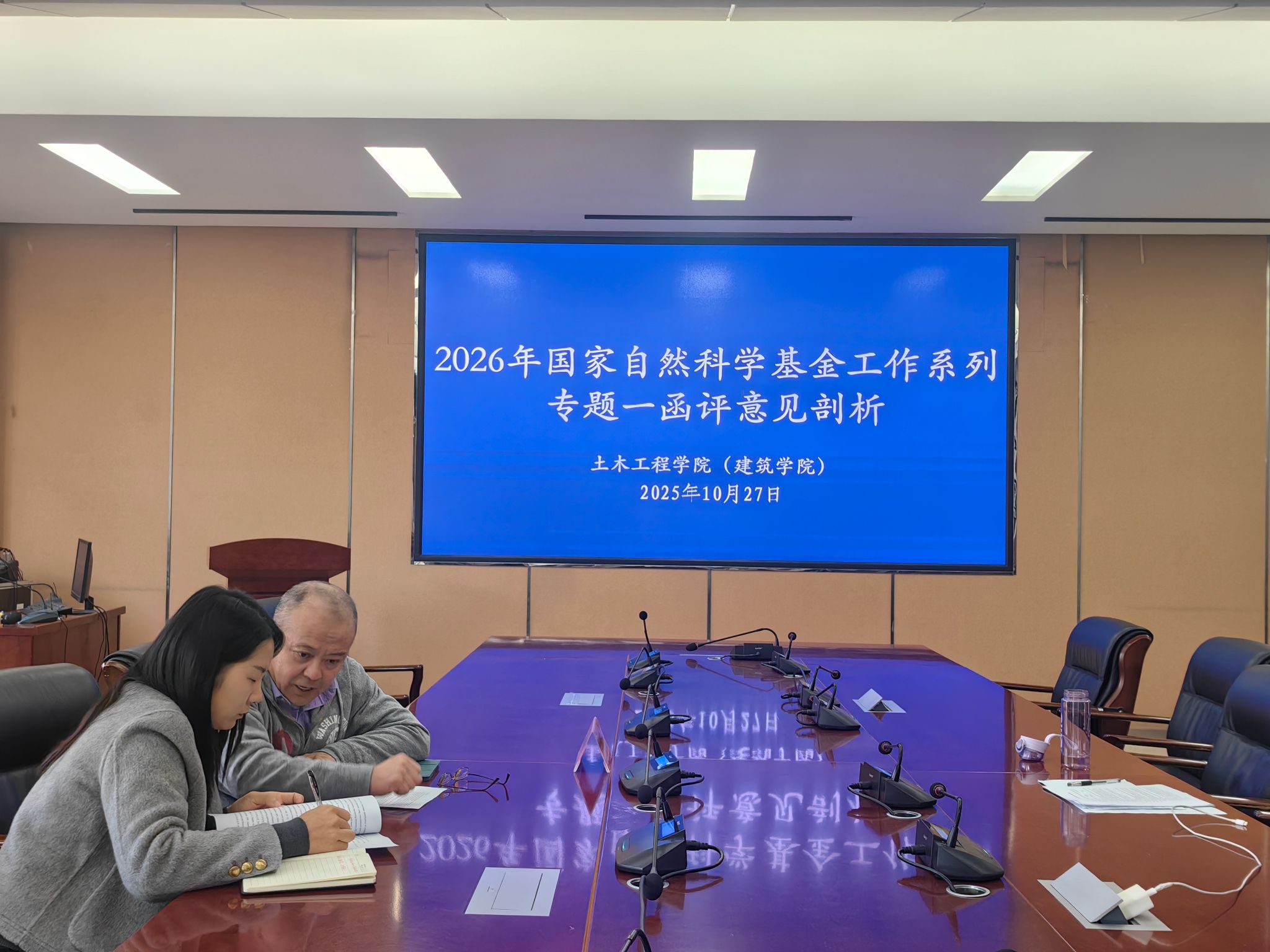为精准备战2026年国基金申报,夯实申报基础,提升命中率学院20251017日下午、1020日下午和1027日全天在32208会议室召开2026年国家自然科学基金工作系列专题一函评意见剖析会,会议旨在通过对2025年国基金函评意见的总结与反思,靶向问题、精准把脉。院长丁永刚、学术副院长徐志军和2026年学院全体基金申报人参加了会议,会议由学术副院长徐志军主持。