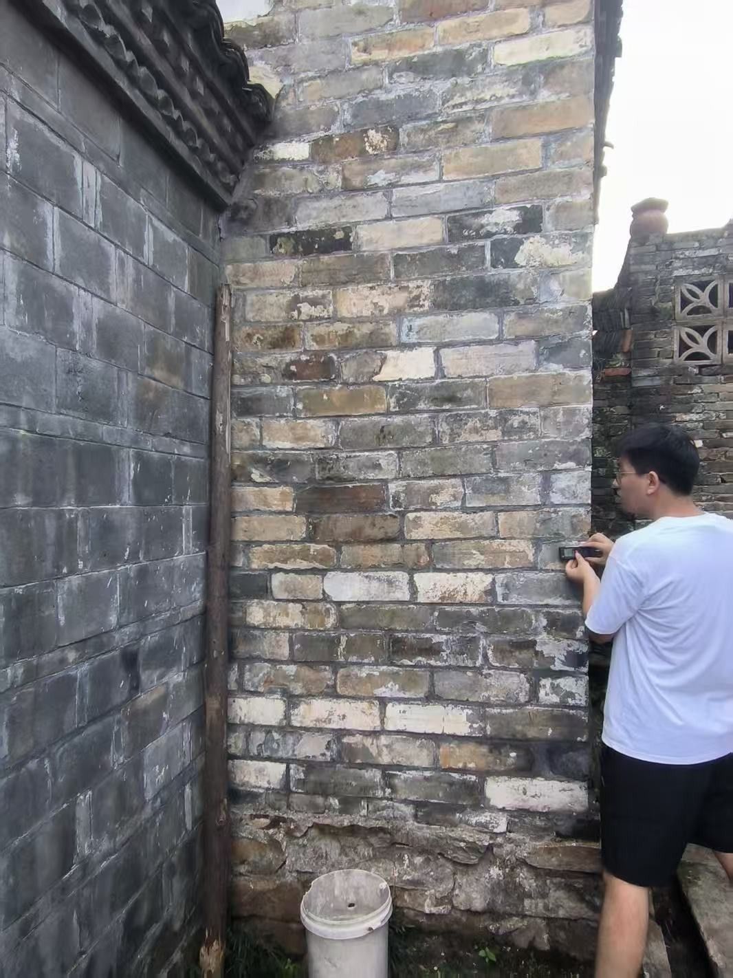8月25日,师生们抵达首站——信阳市新县丁李湾村。该村地处皖、豫、鄂三省交界,建筑风格融汇南北,现存明清时期传统建筑三百余间。学生分组开展调研,收集村落沿革与口述历史资料,运用无人机进行全景航拍与建筑细部测绘,并对保存较为完好的门楼及民居进行精细测量与图纸绘制。