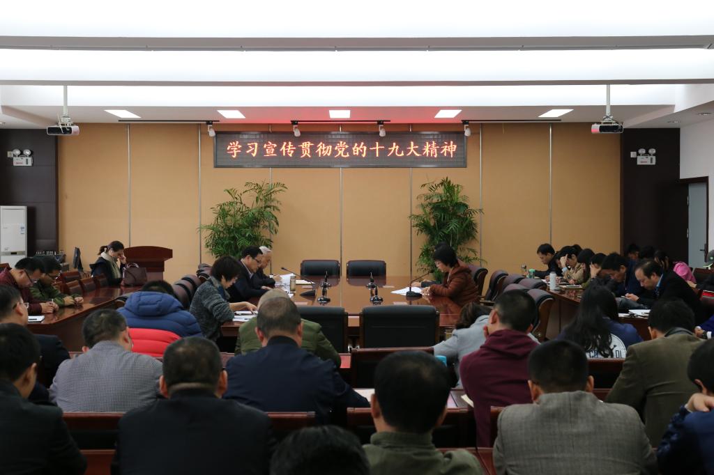 学习宣传贯彻党的十九大精神工作。学院党政领导及全体教师参加会议。院党委书记谭长福主持会议并讲话。
