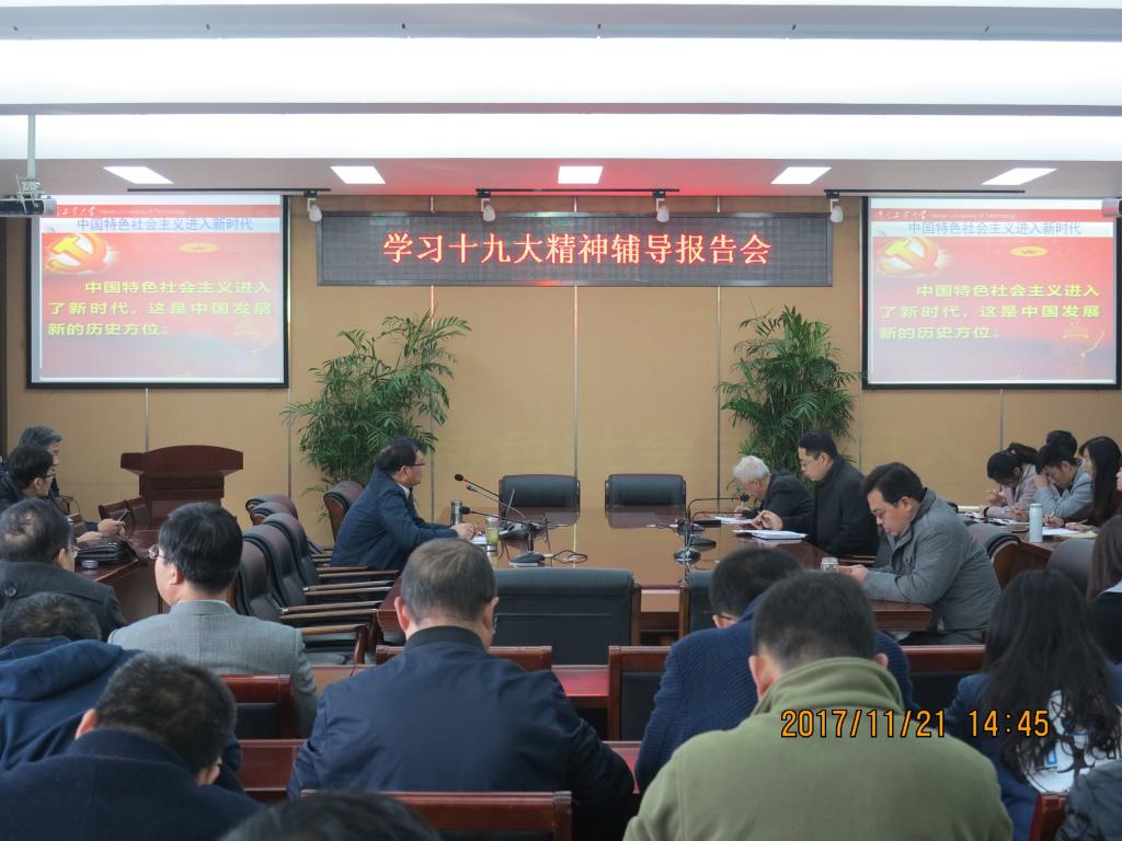 11月21日下午,yanetfix 邀请校党的十九大精神宣讲团成员、马克思主义学院杨卫军教授在32号楼208会议室为yanetfix 全体教工作了题为“习近平论美丽中国建设”的党的十九大精神辅导报告会。报告会由院党委书记谭长福主持。