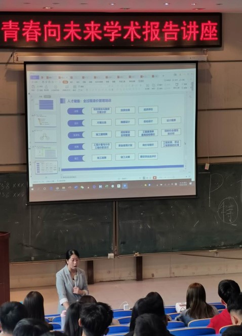 工程管理系的学生做了一场题为“青春向未来”的学术讲座。讲座由土木工程(建筑)学院副院长黄海荣主持,工程管理专业全体教师和工程管理系大二的全体学生参加了本次讲座。